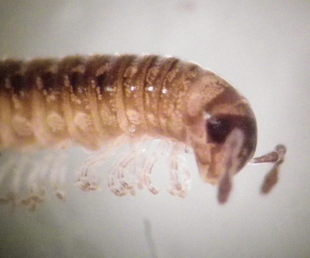 Tête de Leptoiulus belgicus sous loupe binoculaire © HALLART Guénael - CC BY-NC