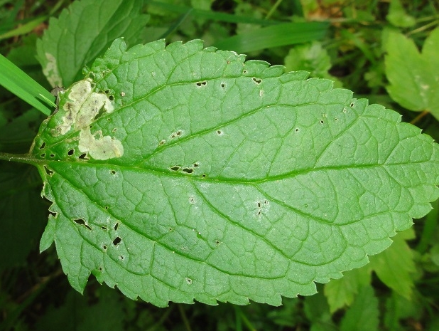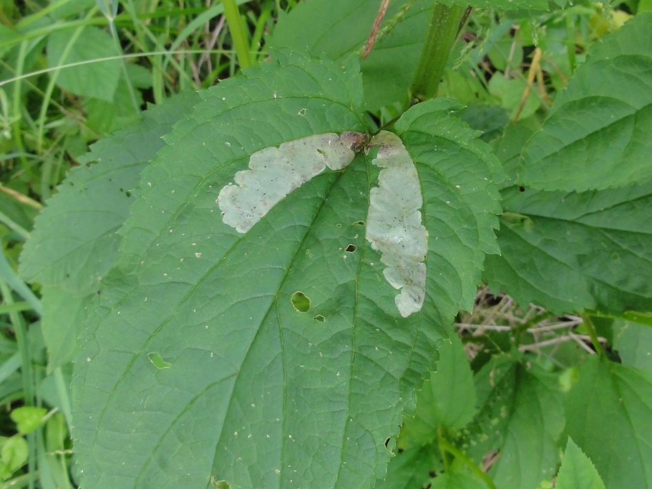 Mine d'Amauromyza verbasci sur une feuille de Scrofulaire © JOURDE Rémi - CC BY-NC