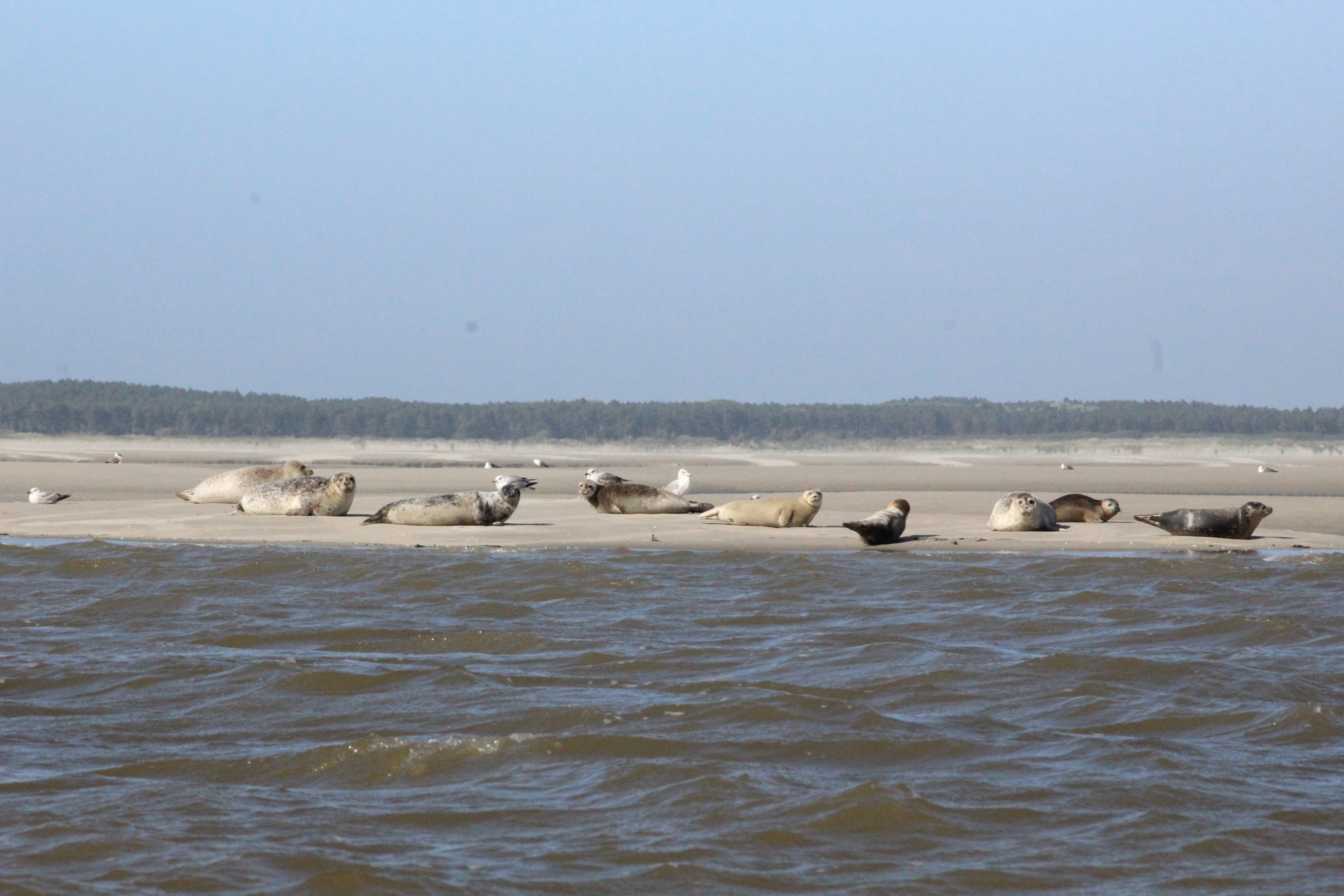 Présent toute l'année, leur nombre est plus important en été, puisqu'ils utilisent les bancs de sable découverts à marée basse pour mettre bas, allaiter et se reposer durant cette période cruciale de leur cycle de vie.