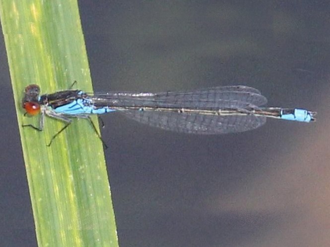 L’espèce ressemble beaucoup à href="/especes/65161">Erythromma najas, mais pour cette espèce, le dessus du thorax du mâle est sans bande claire et l’extrémité de son abdomen est uniformément bleue.